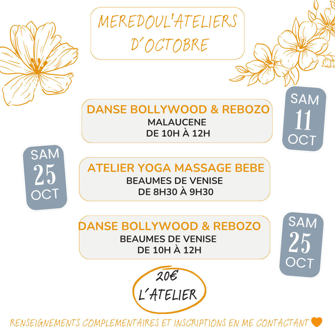 Un nouveau atelier ensemble, au service des cercles de femmes est en train de naître...Je suis également gardienne de tente rouge pour honorer en cercle de femmes chaque grand moment de votre vie.Et je vous invite également à vivre un atelier combinant la joie et le lâcher prise de la danse bollywood avec la détente et le soulagement qu'offrent les bercements Rebozo